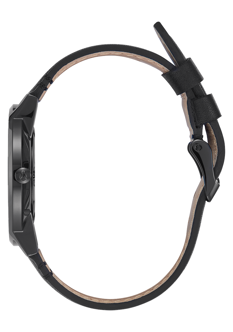 Features a custom stainless steel case, hardened mineral crystal, tapered custom leather strap, and stainless steel screw-down caseback for protection against everyday wear and tear.