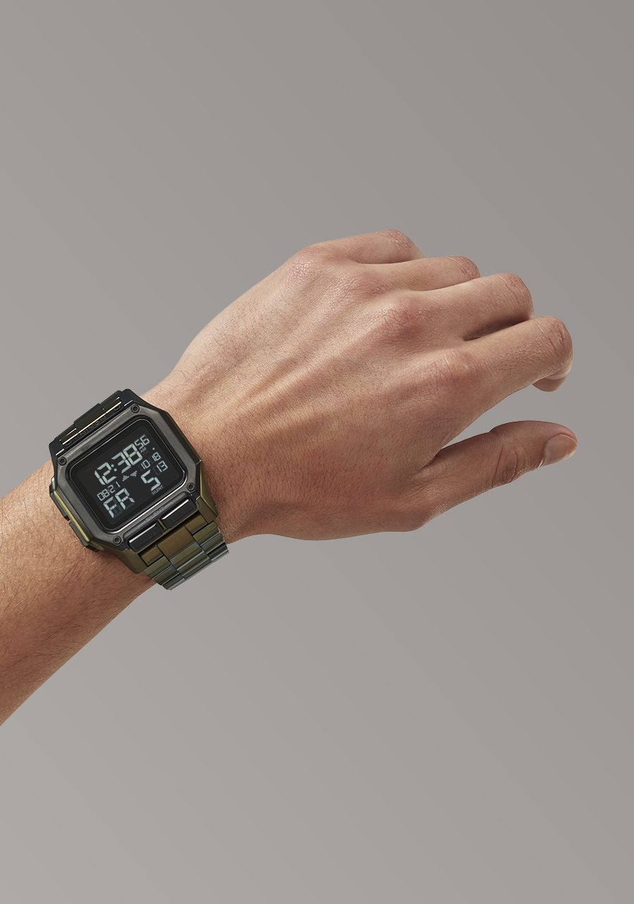 Made to withstand any terrain or conditions with shock-absorbent materials, a 5-year battery, and a 100m water-resistant case and pushers so it can take a plunge.